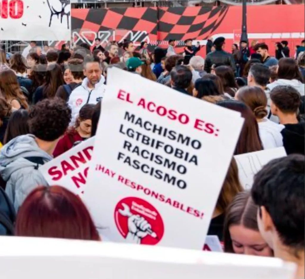 Las imágenes que han definido la protesta, las que han circulado y las que la propia organización ha promovido, son una vergüenza. No reflejan un duelo unánime, sino un mitin excluyente. Un cartel en primer plano, sostenido por los manifestantes, sentenciaba: “EL ACOSO ES: MACHISMO, LGTBIFOBIA, RACISMO, FASCISMO”.