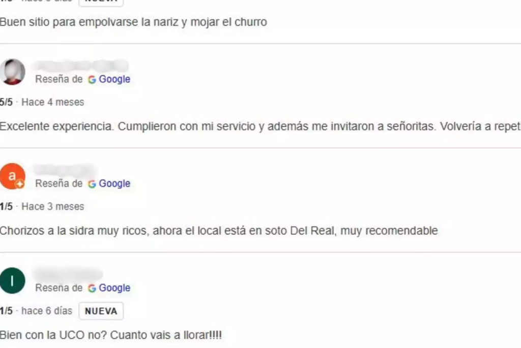 Otros usuarios han ido más allá, modificando imaginariamente la ubicación de la sede social de la empresa. “La dirección está sin actualizar, se ha trasladado a Soto del Real”, reza una de las reseñas, mientras que otra recomienda los “chorizos a la sidra”, apuntando cínicamente que “ahora el local está en Soto del Real”.